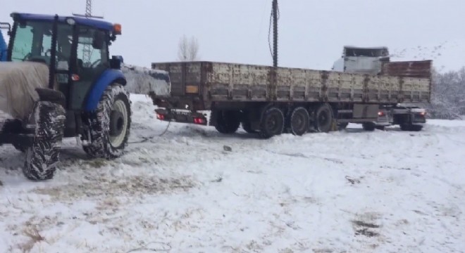 Tırların imdadına traktörler yetişiyor