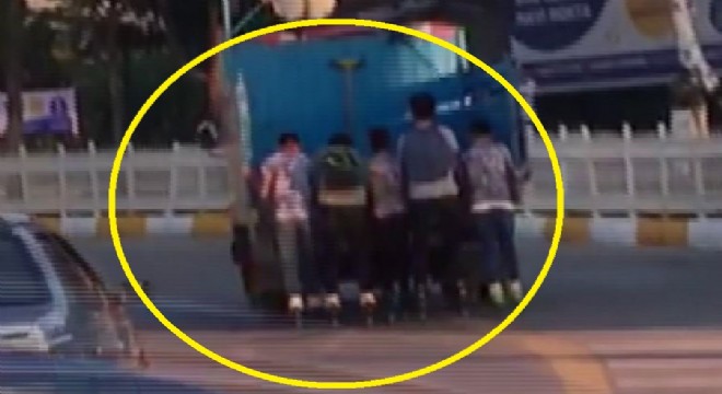 Araçların arkasına tutunarak kazaya davetiye çıkaran gençlere sürücüler de tepki gösteriyor. Üniversite Kavşağı’nda trafiğin yoğun olduğu saatlerde trafikte seyreden bir kamyonete sağlı sollu tutunarak kayan patenli 5 gencin kazaya adeta davetiye çıkardığı görüldü. Gençler, hareket halindeki otomobile tutunarak dakikalarca patenle ilerledi. Gençlerin tehlikeli yolculuğu, otomobilin bir süre sonra yön değiştirmesiyle sona erdi.