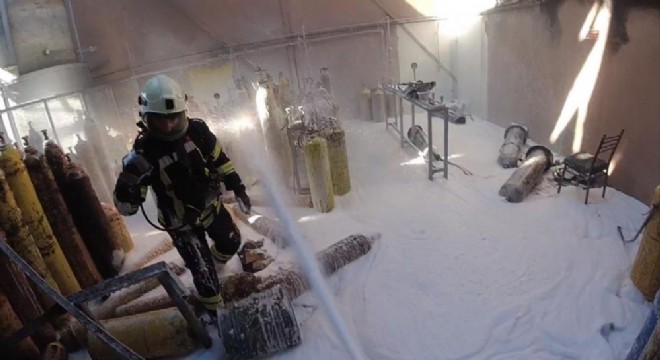 Erzurum'da Organize sanayi bölgesinde bulunan tüp dolum tesisinde meydana gelen patlama sonrası çıkan yangında 1 kişi yaralandı.