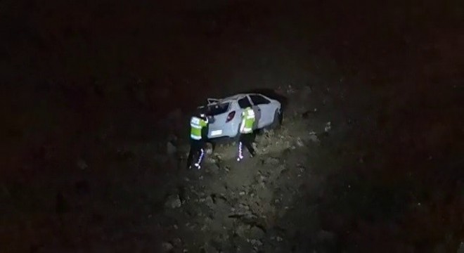 Palandöken Dağı’nda Abdurrahman Gazi Türbesi’ne giden stabilize yolda sürücüsünün direksiyon hakimiyetini kaybetitği otomobil, yaklaşık 50 metrelik uçuruma yuvarlandı.