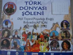 AFYONKARAHİSAR (İHA) - Afyonkarahisar'ın Bolvadin ilçesinde, Afyonkarahisar Oğuz Boyu Yörükler Türkmenler Derneği’nin organize ettiği ‘Türk Dünyası Şöleni’nin yapılacağı bildirildi. Şölenin 15 Temmuz’da Bolvadin’in Paşa dağı eteğindeki Dişli tepesinde yapılacağı belirtildi.