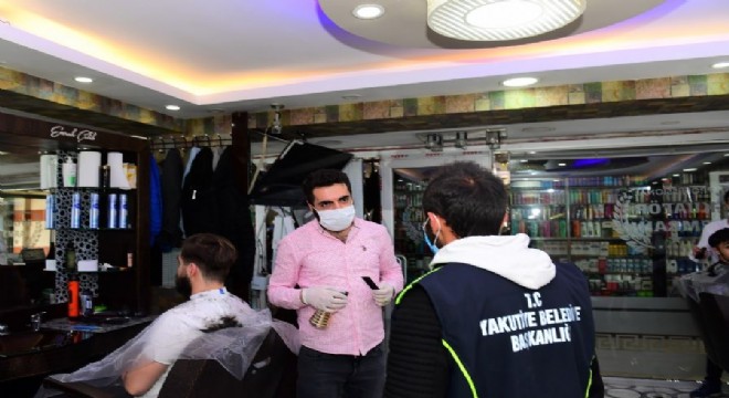 Yakutiye Belediyesi Zabıta ve dezenfekte ekiplerinin ortak yürütülen çalışmaları kapsamında ilçe sınırlarında yer alan tüm kuaförler ve güzellik salonları ilk mesai gününde dezenfekte edildi.