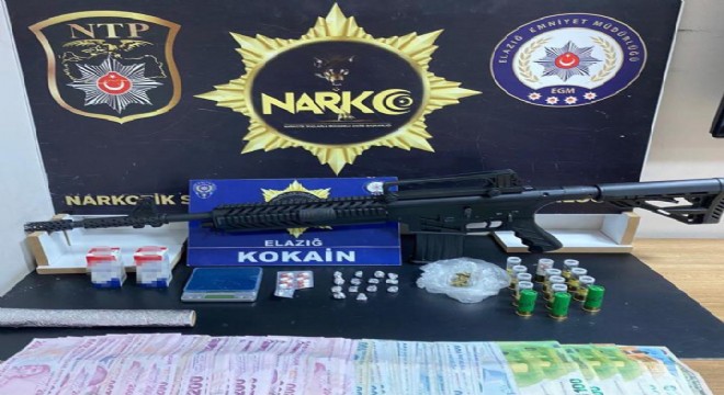Elazığ Cumhuriyet Başsavcılığı koordinesinde İl Emniyet Müdürlüğü Narkotik Suçlarla Mücadele Şube Müdürlüğü ekipleri tarafından, uyuşturucu ile mücadele çerçevesinde sokak satıcılarına yönelik çalışma gerçekleştirdi. Uygulamada, C.E. (38) ve Ö.G. (29) isimli şahısların üst ile ikametlerinde yapılan aramalarda, 14 parça halinde toplam 12.20 gram kokain, 2 adet kokain yapımında kullanılan amonyak çözeltisi, 3,38 gram esrar maddesi, 8 adet sentetik ecza, 1 adet hassas terazi, 1 adet tüfek ve 14 adet kartuş, toplamda 15 bin 400 Türk lirası, 790 Euro ve 5 Dolar ele geçirildi.