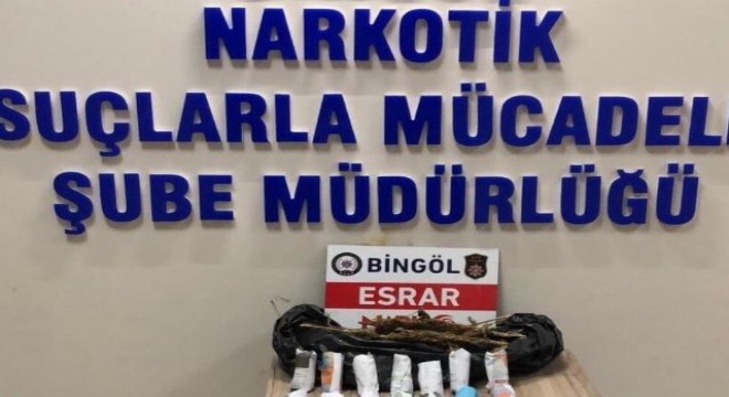 Edinilen bilgiye göre,İl Emniyet Müdürlüğü Narkotik Suçlarla Mücadele Şubesi ekipleri, uyuşturucuyla mücadele kapsamında çalışma yaptı. Polisin çalışmasında havalimanı kavşağında şüphelenilerek durdurulan yolcu minibüsünde, şüpheli E.D'nin valizden 5 kilo 820 gram esrar ele geçirildi. Polis, şüpheliyi gözaltına alarak soruşturma kapsamında Genç ilçesindeki evinde de arama yaptı. Şahsın evinden de 17 paket halinde 320 gram ot esrar ele geçirildi.