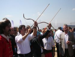 ERZİNCAN (İHA) - Erzincan’da başlayan Dünya Yamaç Paraşütü Şampiyonası kapsamında Osmanlı Okçuları gösteri yaptı. Vali Abdurrahman Akdemir ve Belediye Başkanı Yüksel Çakır ok attı. Kısa bir eğitim alan vali ve belediye başkanı hedefi on iki den vurdu.