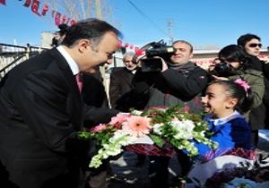 Erzurum'un merkez Aziziye ilçesine bağlı Alaca köyünde ana sınıfı açılışını yapan Vali Ahmet Altıparmak, ilkokul öğrencilerine de karne dağıttı.