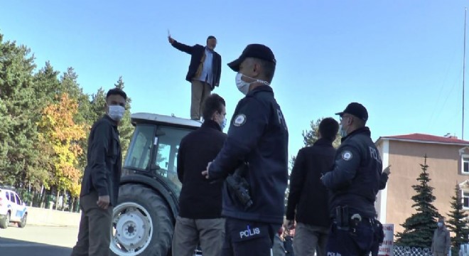 Erzurum’da köyünde ev yapmak için Tarım Müdürlüğü ve belediye tarafından engellendiğini iddia eden yaşlı şahıs elindeki bıçakla traktörünün üzerine çıkarak intihar etmek istedi. Yaşlı vatandaşı Erzurum Valisi Okay Memiş ikna ederek aşağı indirdi.