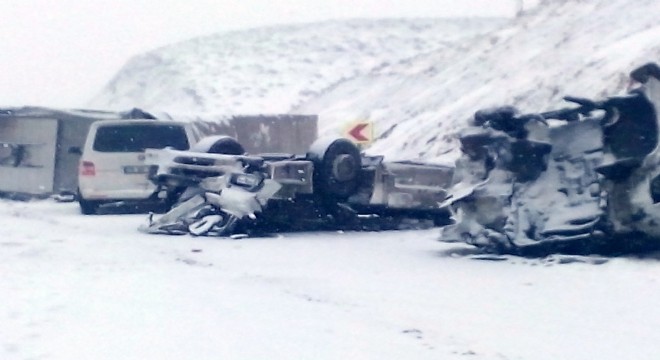 Ardahan- Erzurum karayolunda otomobil ile TIR'ın çarpışması sonucu meydana ...