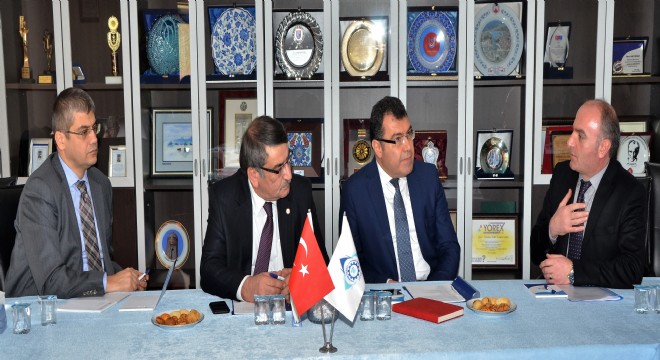 YÖK Başkan Yardımcısı Prof. Dr. Hasan Mandal, YÖK Yürütme Kurulu Üyesi Prof. Dr. Mehmet Şişman, YÖK Denetleme Kurulu Üyesi Prof. Dr. Orhan Aydın ve Vakıf Yükseköğretim Kurumları Koordinasyon Birimi Sorumlusu Semanur Güler’den oluşan YÖK heyeti ilk olarak ETSO’yu ziyaret etti. ETSO’da Meclis Başkanı Saim Özakalın ve vakıf yetkilileriyle görüşen YÖK Başkan Yardımcısı Prof. Dr. Hasan Mandal başkanlığındaki heyet, kurulacak olan vakıf üniversitesiyle ilgili bilgi aldı.