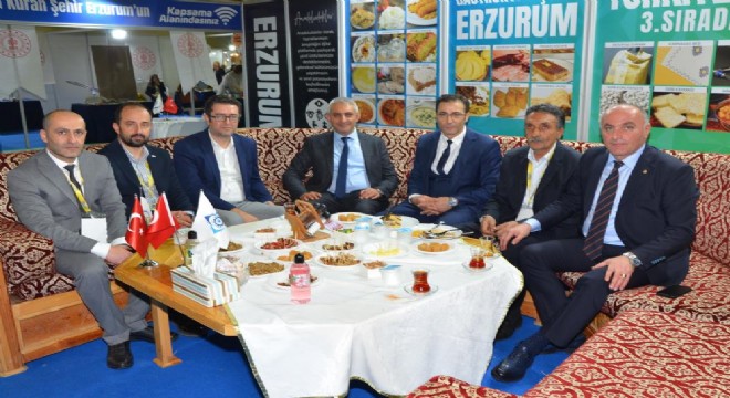 Açılış töreninin ardından, şehrin coğrafi tescilli yöresel ürünlerinin fuar katılımcılarının beğenisine sunulduğu Erzurum standına geçen Başkan Özakalın, Erzurum Ticaret Borsası (ETB) Başkanı Hakan Oral, ETB Meclis Başkanı Yavuz Güney, Oltu TSO Yönetim Kurulu Başkanı Baki Karaca, Pasinler TSO Yönetim Kurulu Başkanı Aydın Taşbaşı, TOBB İl Genç Girişimciler Kurulu Başkanı İsmail Suci ve TOBB İl Kadın Girişimciler Kurulu Başkanı Kübra Alioğulları ile birlikte misafirlerini ağırladı.