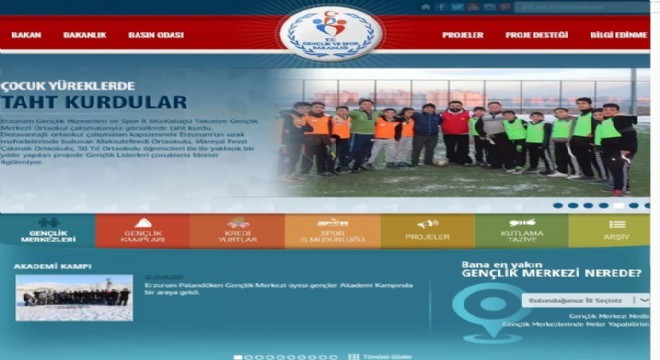 Erzurum Gençlik Hizmetleri ve Spor İl Müdürlüğüne bağlı Yakutiye Gençlik Merkezi yapmış olduğu çalışmalarla Gençlik ve Spor Bakanlığının gündemine manşetten girmeyi başararak ilimizde yapılacak Uluslar arası bir organizasyon olan EYOF ile www.gsb.gov.tr adresinde aynı satırda yer aldı.