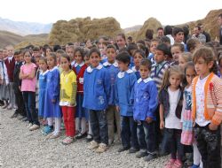 ERZURUM (İHA) - Eğitim ve öğretimde bu sene yürürlüğe giren kılık kıyafette serbestlik konusunun tartışması zaman zaman devam ederken, Erzurum’un Horasan ilçesine bağlı Yeşilyurt köyünde protokolün de katıldığı törende köyde ikamet eden ve okuma azmiyle yanıp tutuşan ilköğretim öğrencisi çocukların yokluk nedeniyle kara lastik ve terliklerle okula gelmeleri İHA objektifine yansıdı.