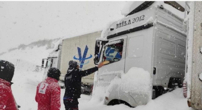 Yollarda mahsur kalanlara kumanya desteği verildi