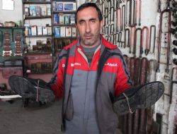 ERZURUM (İHA) – Erzurum’un Oltu ilçesinde yaşayan esnaf Nuri Çelik, yaptığı zincirli ayakkabı aparatını tanıttı.