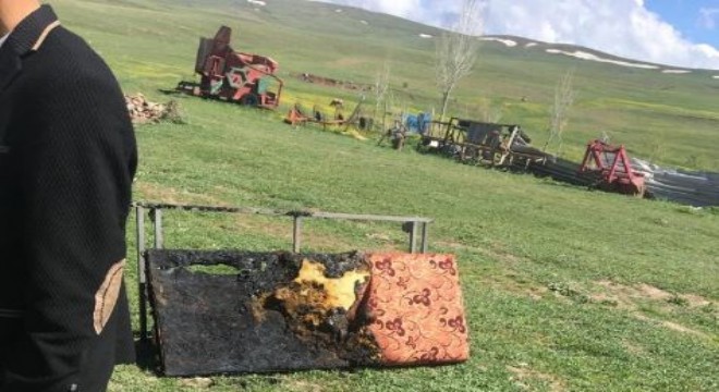 Aşkale'nin Kavurmaçukur köyünde meydana gelen yangında bir kullanılmaz hale geldi