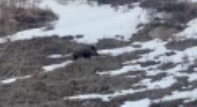 Edinilen bilgilere göre, sürüsünden ayrılan yavru domuz, yeniden ailesine kavuşabilmek için sürüsünün ayak izlerini takip etmeye çalıştı. Zaman zaman durarak iz süren yavrunun, ardından yeniden ilerlediği görüldü.